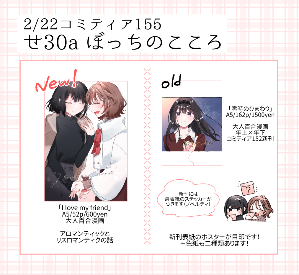 また既刊「零時のひまわり」の再版&間に合えばグッズと名刺があり、色紙なども飾ってあると思うので、よければ覗きに来てください~
