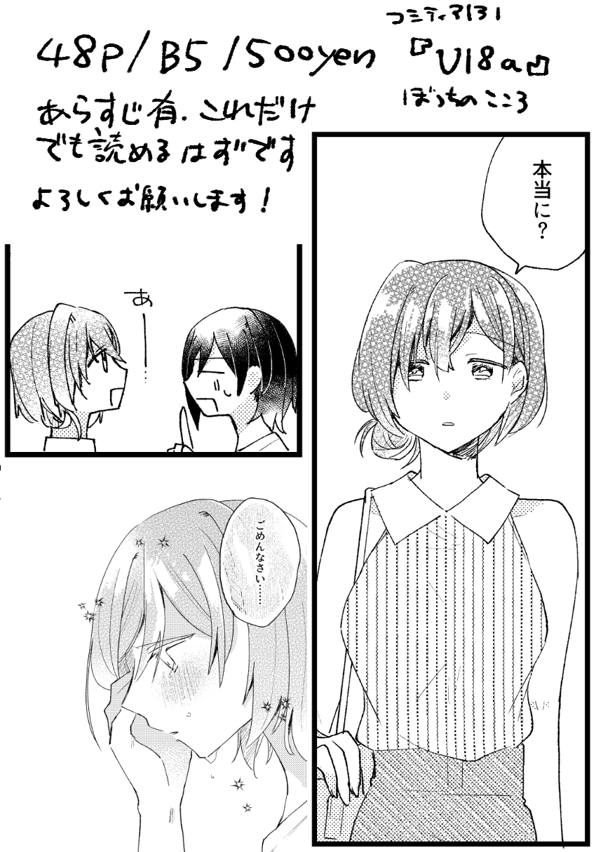 無事星川と望月の物語が完結し、また創作百合SSの中編連載を開始したため、次回コミティアは未定です。
