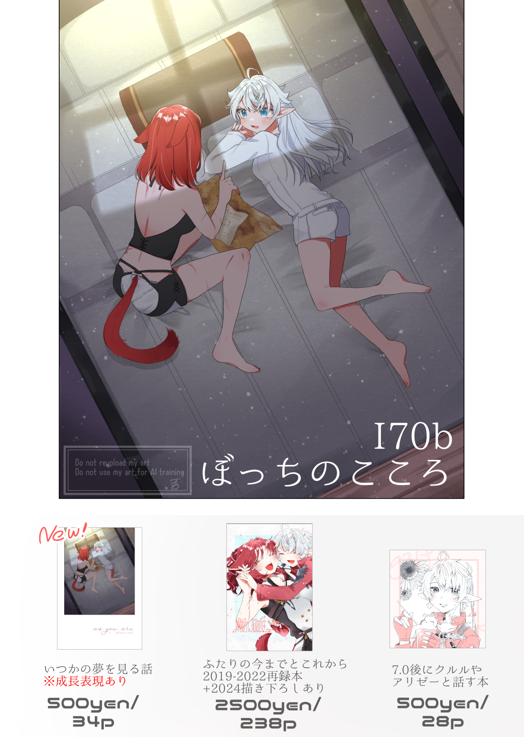 また、14をご存知ではないのに手に取ってくださったり、ぜんぶくださいと仰っていただけたのも踊るほど嬉しかったです!14、RPG3本分無料なので遊んでみてくれたら嬉しいな……ネトゲだけどメインはほぼソロでできるので……と、念を飛ばしています(?)。