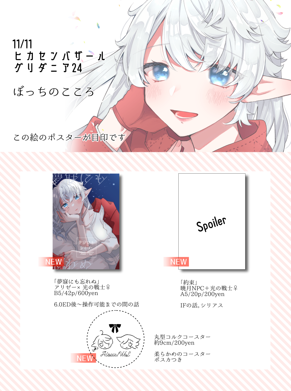 11月11日開催のオフラインFF14オンリーイベント「ヒカセンバザール(https://hikasenbazar.info/)」に参加予定です。