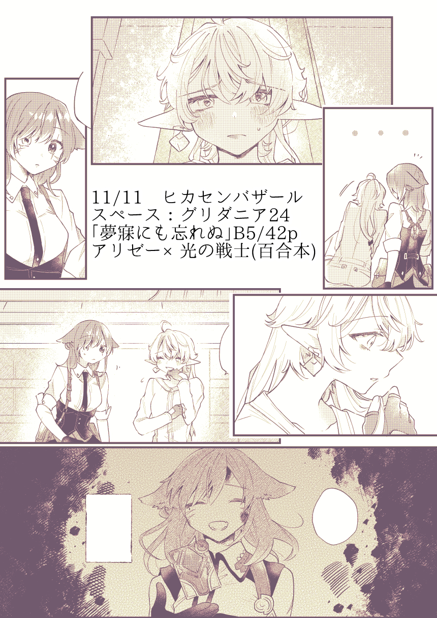新刊「夢寐にも忘れぬ」アリゼー×光の戦士♀ B5/42p/600円 タイトル一部箔押し