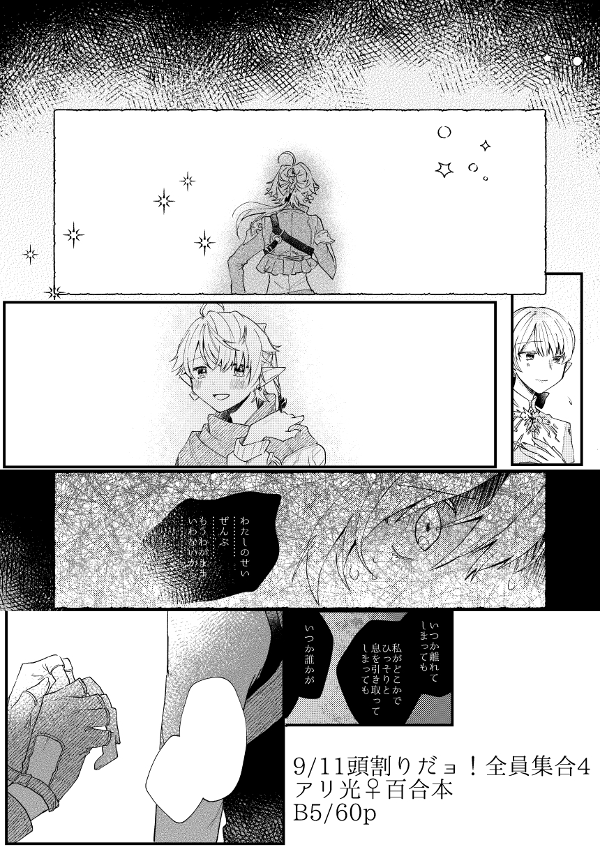 9月11日開催のオンラインFF14オンリーイベント「頭割りだョ!ヒカセン大集合4(https://twitter.com/14Atamawari)のスペース、及び新刊のお知らせです。