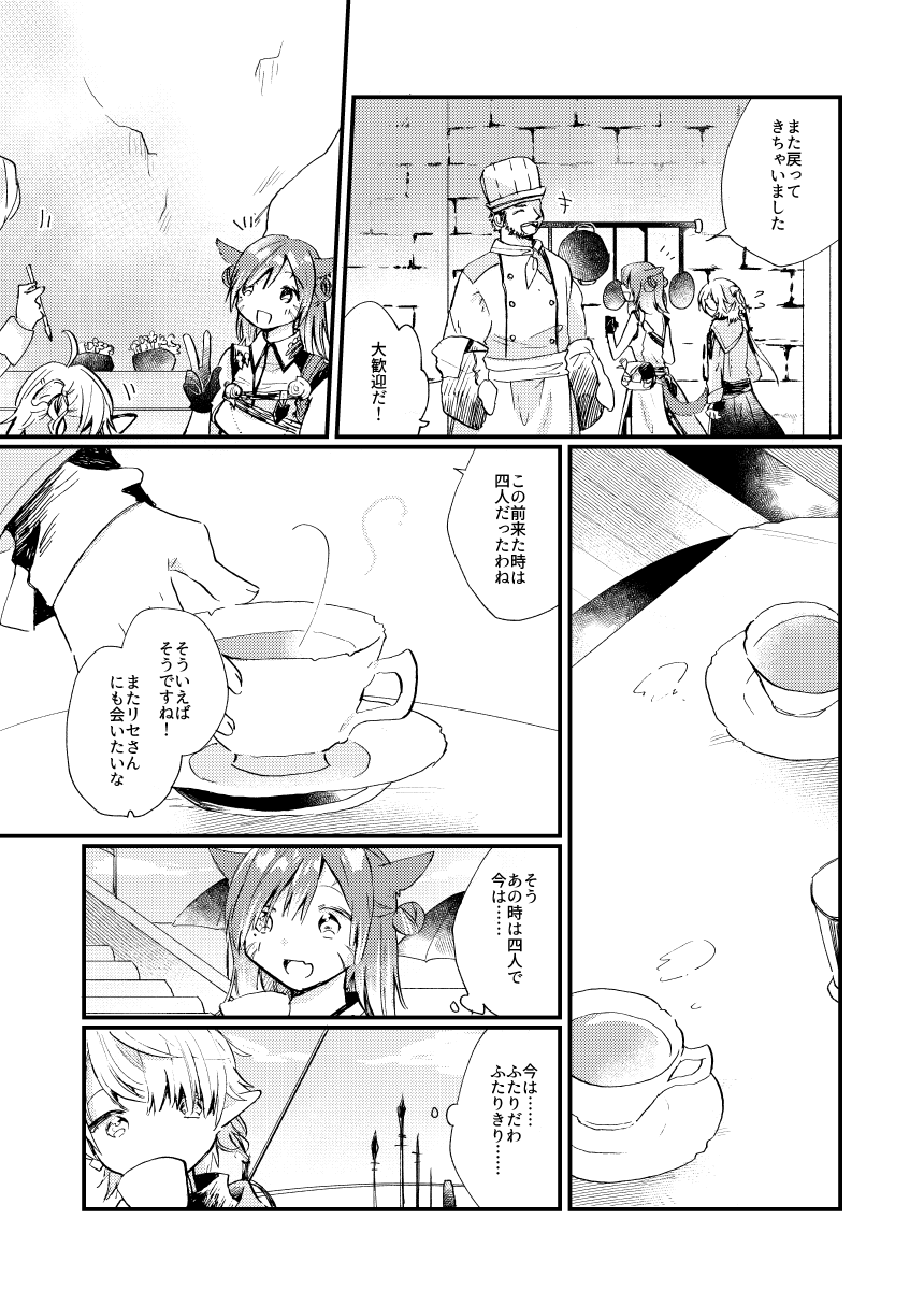 前作などの繋がり有。アリゼーと光の戦士♀が一緒に料理をしたり、お話をするほのぼの本。